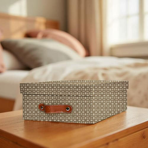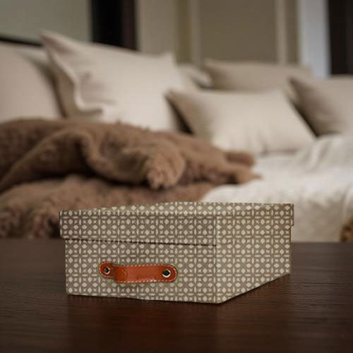Caja organizadora con diseño, forrada a mano en cartón rígido con papel laminado con textura lino color Monograma Arena. Su tono neutro aporta elegancia, calma y orden a cualquier espacio. Ideal para organizar, decorar tu closet con estilo . Hecha artesanalmente en México por Duartee&Co Disponible en cinco tamaños (S, M, L, XL y XXL), es perfecta para organizar ropa, juguetes, documentos, accesorios u objetos personales, aportando orden y estilo en cualquier espacio
