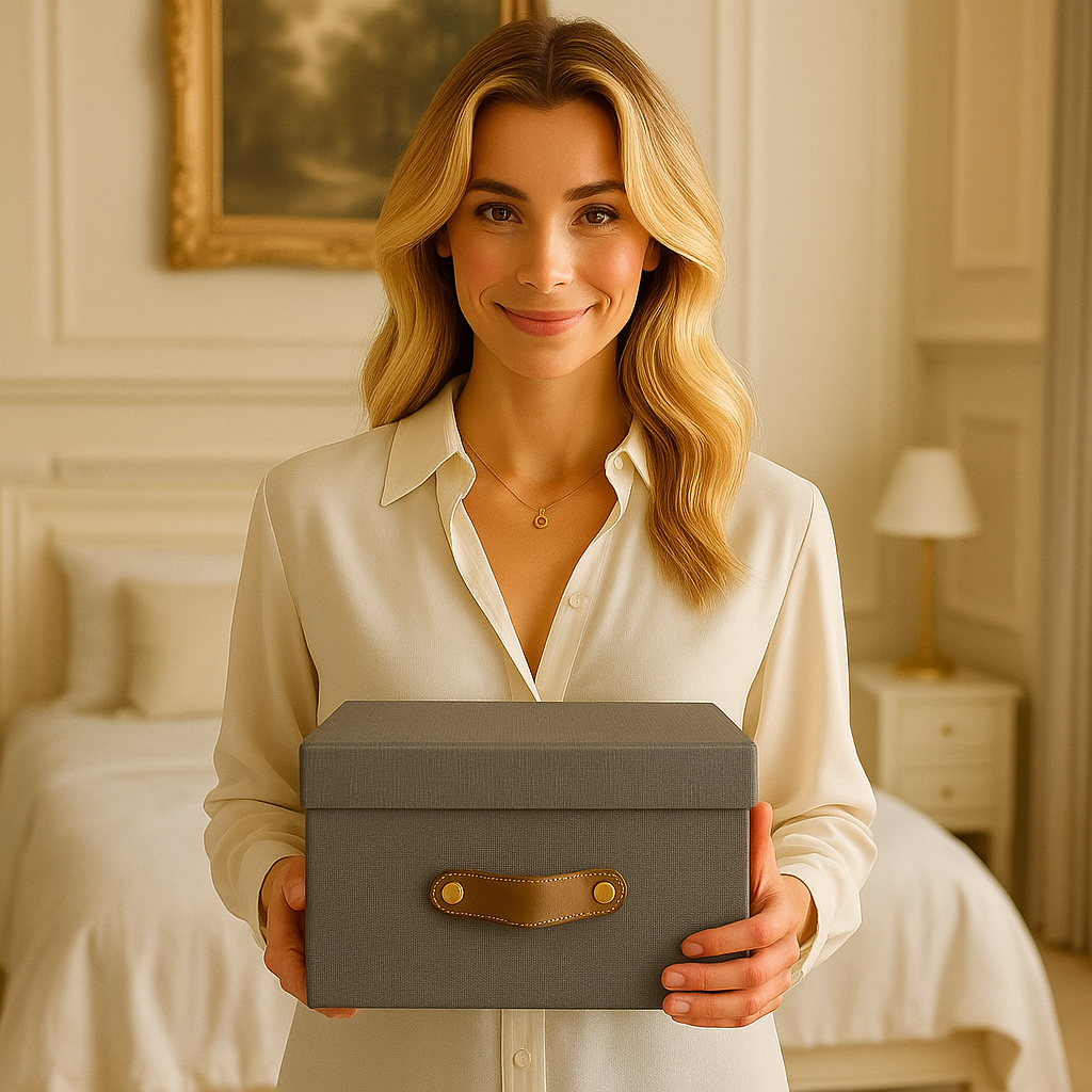 Caja organizadora con diseño, forrada a mano en cartón rígido con papel laminado con textura lino color Gris oxford. Su tono neutro aporta elegancia, calma y orden a cualquier espacio. Ideal para organizar, decorar tu closet con estilo . Hecha artesanalmente en México por Duartee&Co Disponible en cinco tamaños (S, M, L, XL y XXL), es perfecta para organizar ropa, juguetes, documentos, accesorios u objetos personales, aportando orden y estilo en cualquier espacio