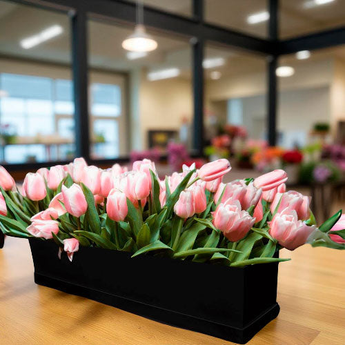 Su formato alargado realza ramos horizontales o diseños asimétricos, convirtiéndola en la opción ideal para floristerías, eventos especiales o detalles de lujo. Cuidado: basta con pasar un paño semihúmedo para mantenerla limpia.
