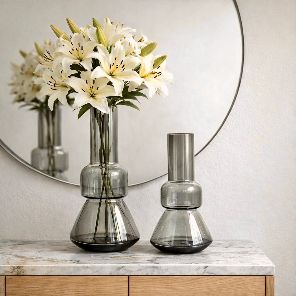 Jarrón Florero espejo Tarsa Chico en acabado tipo espejo con brillos y reflejos espectaculares para tus espacios