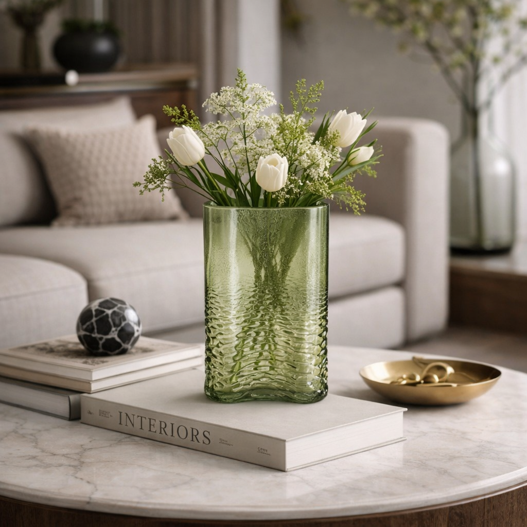 Jarrón de vidrio en forma redondeada color verde