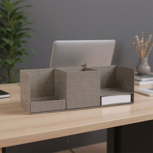 Cuenta con múltiples compartimentos diseñados para guardar bolígrafos, notas, clips y otros accesorios de oficina, facilitando el acceso rápido y la organización eficiente. Perfecto para oficinas, estudios o escritorios en casa, combina funcionalidad con un acabado sofisticado que complementa cualquier decoración.