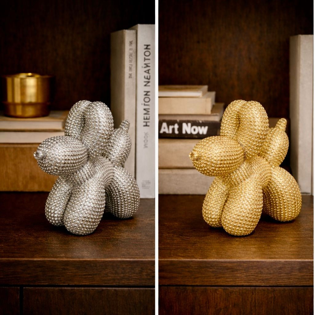 Figura decorativa Perritos con textura plata, dorado y blanco